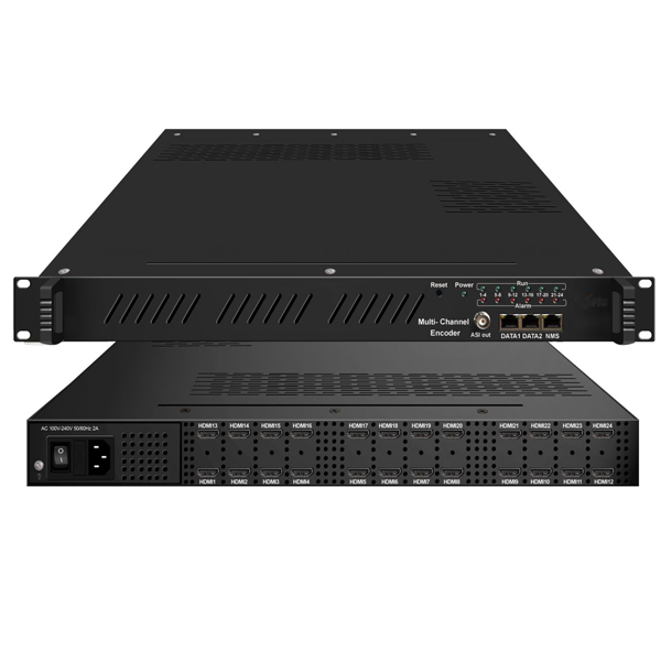 二十四路HDMI高清编码器支持24HDMI高清信号输入,通过H.264视频和MPEG-1音频编码形成TS复用流或形成24路独立的IP(24XSPTS),输出接口为ASIIPTS over UDP)。主要应用于数字电视前端直播系统的高清信号转播和IPTV直播系统的编码实现。
