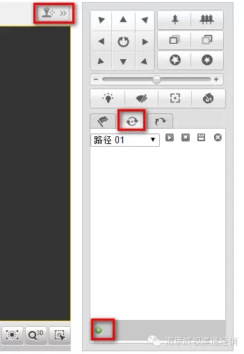 IE界面下,点击云台控制界面的巡航界面,然后点击下方的“+”号。