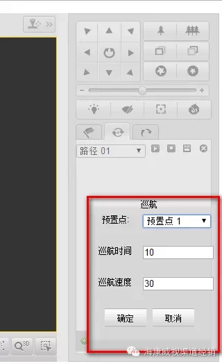 配置要点:设好几个预置点后,点击巡航的设置,把每个预置点都添加进去,配好每个点停留的时间和点到点的速度。